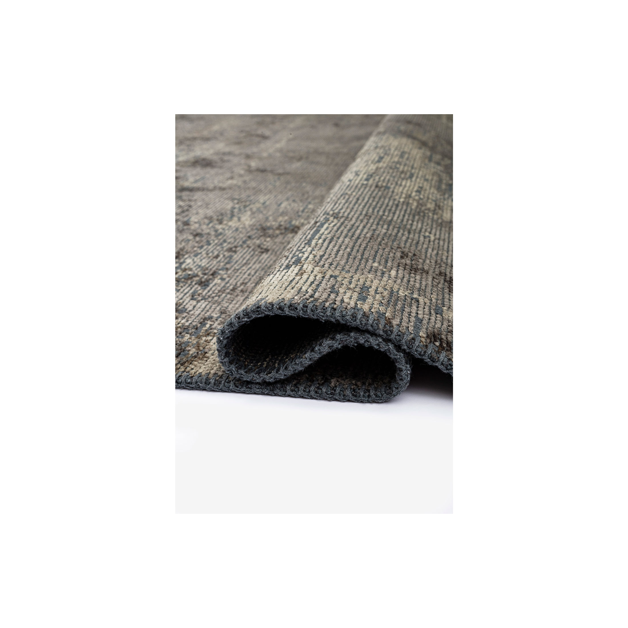 Rectangle area rug, Bamboo silk, Two-tone combination, Durable weave style allows rug to lay flat, Piece-dyeing, Overlock stitch edge, Hand finished, Weight 2,600 gr/m2, Design and color as shown, Custom sizes available on request